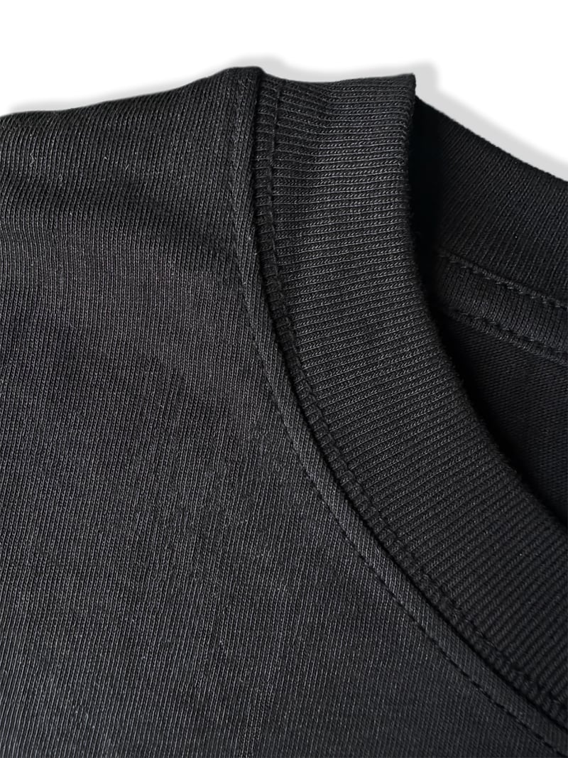 Boxy oversized fit in a medium weight cotton. Short sleeve jersey t-shirt in solid black. Ribbed crewneck collar.